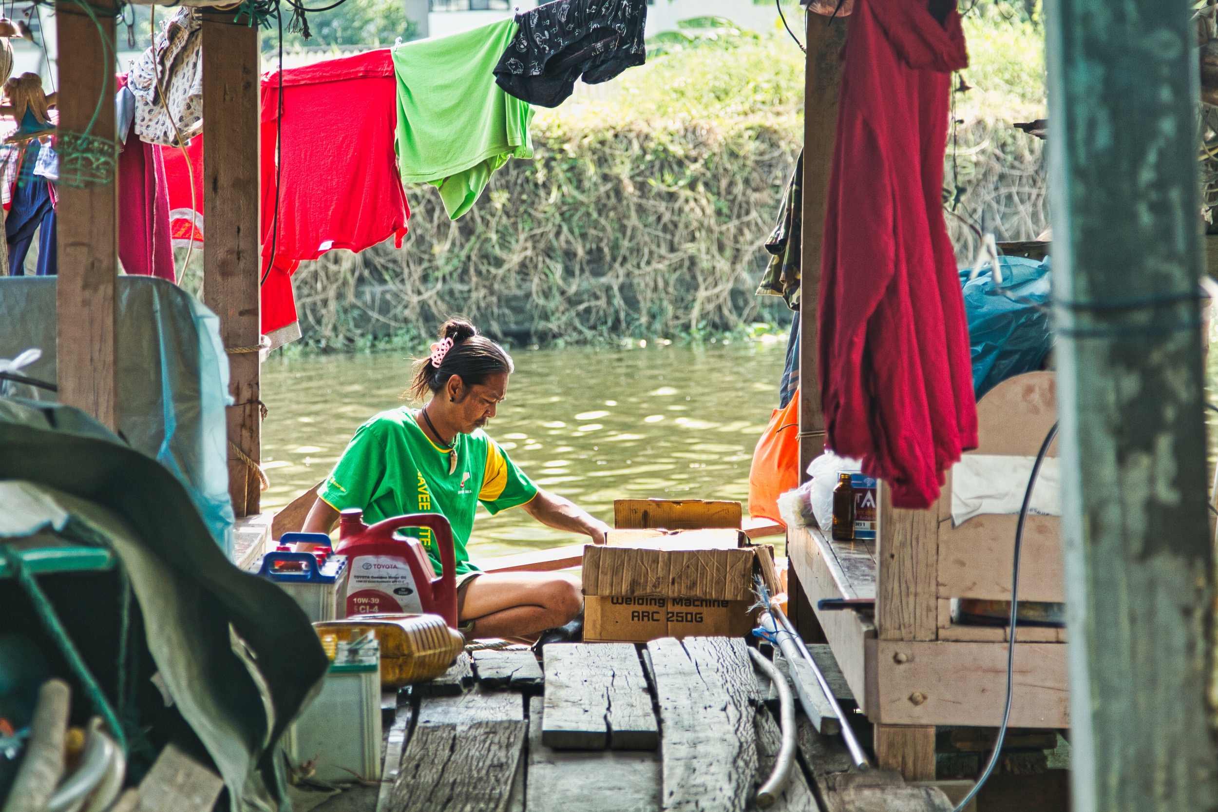 « back to gallery -pageLife in the Chonburi khlongs - Thailand Monk enjoying a quite moment in the park infront of the temple in the village of Kampaeng Thong, ThailandHome on the khlong in the village of Kampaeng Thong, ThailandWoman crossing the bridge in the village of Kampaeng Thong, ThailandBoat passing on the khlong in the village of Kampaeng Thong, ThailandView of the khlong in the village of Kampaeng Thong, ThailandOn their way to work in the village of Kampaeng Thong, ThailandThe barber in the village of Kampaeng Thong, ThailandAnnual childrens day in the village of Kampaeng Thong, ThailandDrying laundry by the khlong in the village of Kampaeng Thong, ThailandHead of the family sitting in his living room situated by the khlong.Man setting up his fishing net in the khlongView from a long tail boatDecorating of inside roof of a longtail boatWoman picking fruits from her garden by the khlong.Woman preparing her products for salein her home.Home by the KlongThe lotus farmThe lotus farmThe lotus farmWoman protecting her face from the sun by the khlong.The wife and husband shopkeepers in the village Kampaeng Thong, Thailand.Shopkeeper waiting for clients by the khlong.Washing dishes iin the village Kampaeng Thong, Thailand.A new morning in the village Kampaeng Thong, Thailand.A new morning in the village Kampaeng Thong, Thailand.A new morning in the village Kampaeng Thong, Thailand.Monk doing his morning round in the village Kampaeng Thong, Thailand.MOnks receiving offerings from woman in the village Kampaeng Thong, Thailand.The monk doing his morning round in the village Kampaeng Thong, Thailand on the longThe village chief in the village Kampaeng Thong, Thailand making food in his restaurant.Woman selling colourful fish food and cold drinks in the village Kampaeng Thong, Thailand.The village chief in the village Kampaeng Thong, Thailand making food in his restaurant.The barber in the village Kampaeng Thong, ThailandLongtail boat on the khlong in the village of Kampaeng Thong, ThailandMother and child feeding the fish by the long in the village of Kampaeng Thong, Thailand